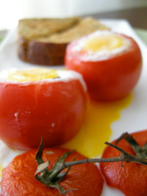 The tomatoes look so good with the runny yolk coming out. I think that it makes the picture look better than just seeing them all perfect in the tomatoes. It makes me want to give this a try even more and make sure yo have my yolks a little runny, mmm :D